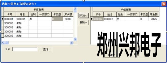 在左邊的卡信息表中選擇掛失的卡號,單擊[添加]按鈕添加到右邊的卡信息表中