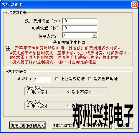 費(fèi)率設(shè)置卡:設(shè)置水控的扣費(fèi)費(fèi)率。