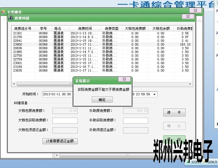 答:如果實(shí)際消費(fèi)金額處比原來 的消費(fèi)金額大肯定會(huì)提示這個(gè)錯(cuò)誤,如果提示這種錯(cuò)誤 請(qǐng)重新輸入正確金額即可(像這種情況一般情況下是要知道真正的應(yīng)該刷客戶多少錢的,然后在實(shí)際消費(fèi)金額處輸入實(shí)際應(yīng)該消費(fèi)的金額之后()-確定即可)