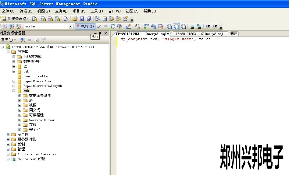 3. 輸入登錄名和密碼后,按"連接"按鍵,會(huì)進(jìn)入下一下畫面,在此畫面輸入sp_dboption 數(shù)據(jù)庫(kù)名, 'single user', false此命令