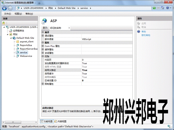 IIS管理器中,展開本地計(jì)算機(jī),展開網(wǎng)站,展開Default Web Site,點(diǎn)擊service,雙擊右邊目錄里的asp,啟用父路徑。