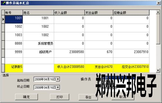 因為軟件涉及到金額,所以操作的時候就要求我們謹(jǐn)慎,如果出現(xiàn)問題,就要責(zé)任到人,操作員流水匯總表可以查詢不同的時間由哪個操作員做的操作。