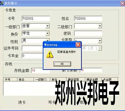 今天碰到一個客戶,發(fā)行新卡的時候,讀卡正常,但無法修改卡號,別的欄可以修改.發(fā)卡也會提示”寫庫信息失敗”.