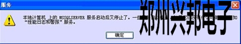 3.出現(xiàn)“本地計(jì)算機(jī)上的MSSQLSERVER服務(wù)啟動(dòng)后又停止了。