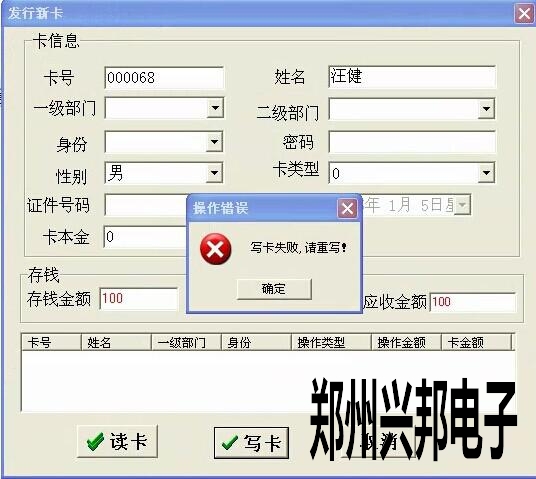 [文章內容簡介]: 客戶用的485食堂售飯機軟件,軟件可以正常打開,正常讀卡,客戶卡也能正常使用,發(fā)行新卡,存款時讀卡的時候是正常的,但是在寫卡的時候一直提示寫卡失敗,請重寫!