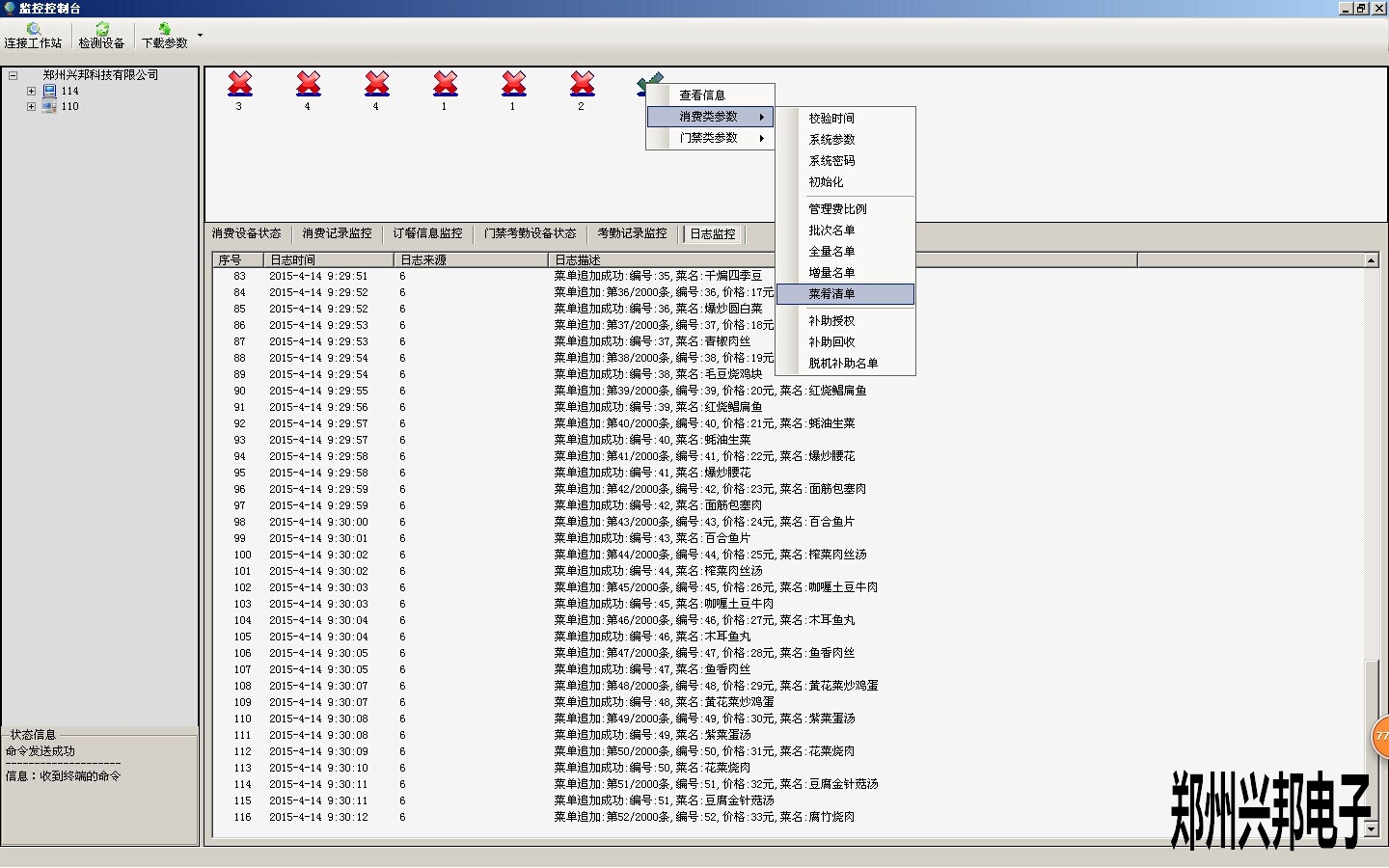 2.菜單添加完成后,需要將菜單通過(guò)下載參數(shù)的方法下載到消費(fèi)機(jī)中,下載時(shí)需要將機(jī)器和軟件連通,下載方法如下圖所示: