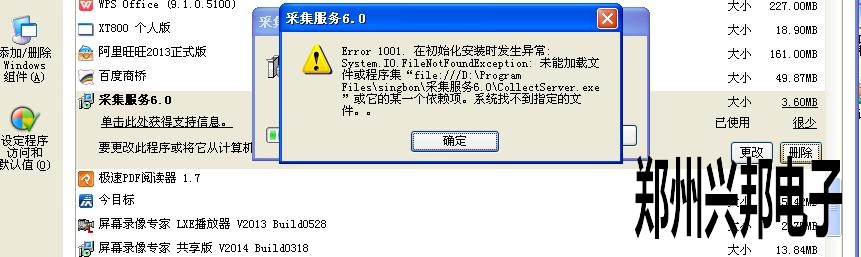 在卸載采集服務(wù)的時候,出現(xiàn)了Error:1001.在初始化安裝時發(fā)生異常,未能加載文件或程序集