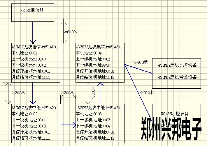 2、一個433MHZ無線通信器(WLA001)的無線覆蓋范圍為直經(jīng)400米(空曠地區(qū));只要在收發(fā)的范圍內(nèi),可連接的終端設(shè)備的臺數(shù)理論上沒有限制;地址號9998、9999,終端設(shè)備不可用,系統(tǒng)使用;