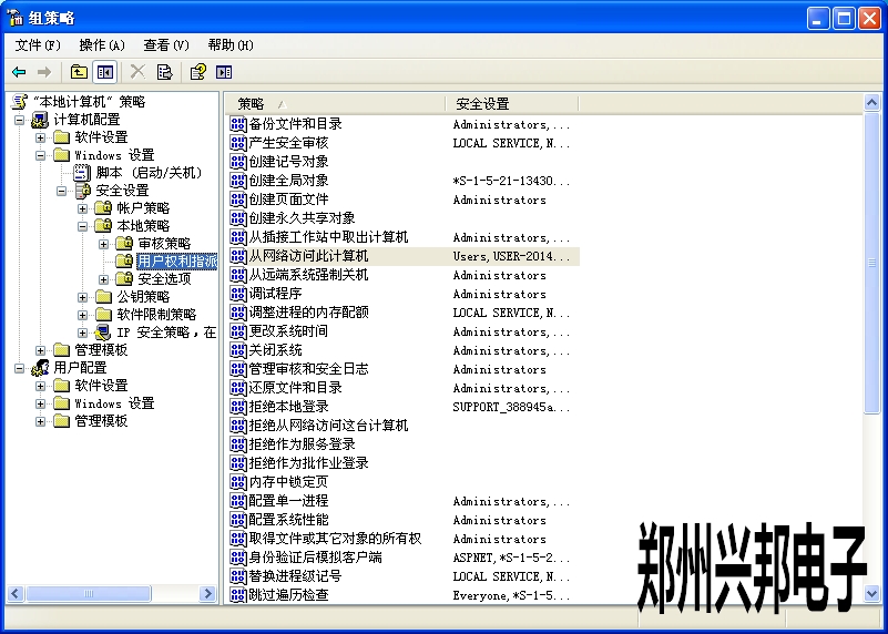 選擇“計算機配置” →“windows設置” →安全設置→“本地策略” →“用戶權利指派”打開