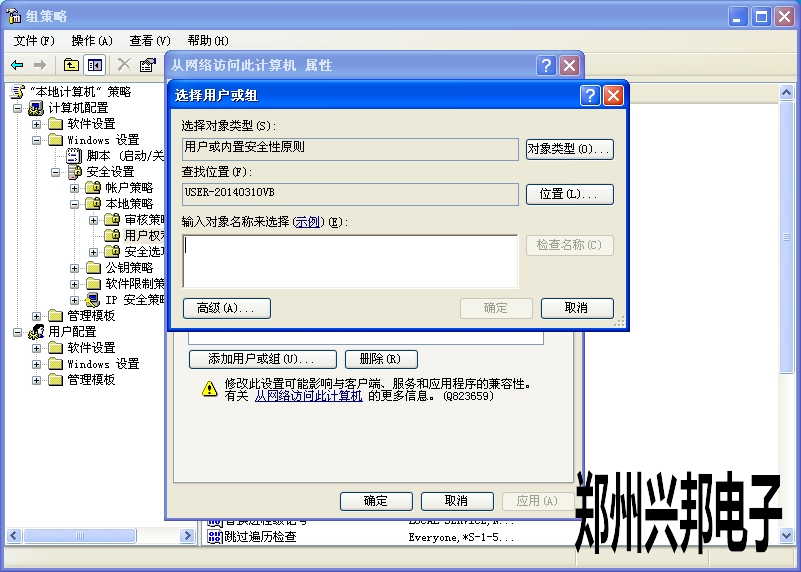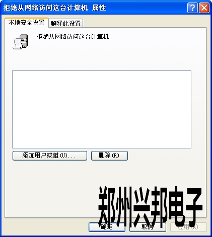 在“拒絕從網(wǎng)絡訪問”右擊“屬性”把里面的所有賬戶刪除