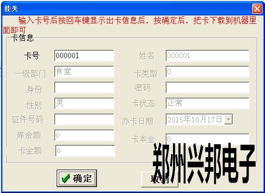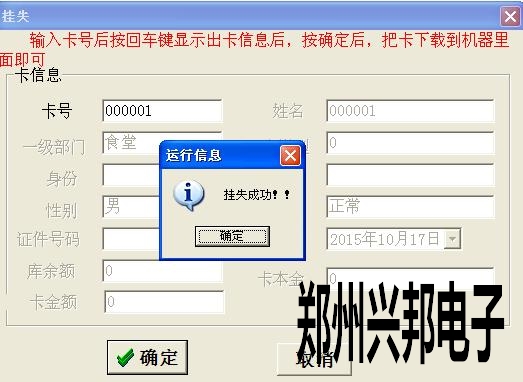 4、掛失成功后要連通消費機,下載一下掛失單,這樣拿在機器上刷就會顯示4—ERR掛失卡。