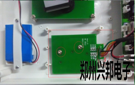 改動位置,刷卡板往下移動,會有兩個螺絲孔剛好對上,如圖2-1所示,圈3位置要打熱熔膠固定(防止運輸過程中晃動脫落)。圖2-2中,開關(guān)線和電池電源線,從主板上面過,減少電源對刷卡板干擾。
