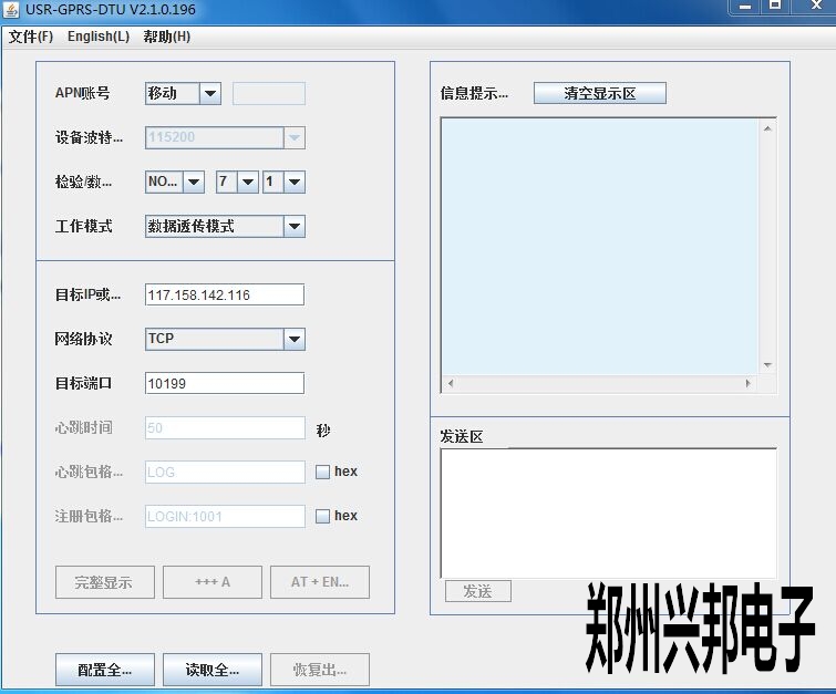 息,設置參數(shù)要與 GPRS 串口連接的串口設備的串口參數(shù)一致。這里我們使用115200波特率
