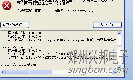 互聯(lián)網(wǎng)一卡通食堂售飯機的軟件,在操作啟動采集時提示無法啟動計算機上的CollectServer