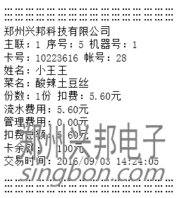 7. 對一個用戶卡,小票打印一體機在本機上的當次明細以小票的形式打印出來,設置打印張數(shù),以便客戶報銷和查賬,進行訂餐、取餐、菜單消費、直接扣費打印小票內容各有不同。