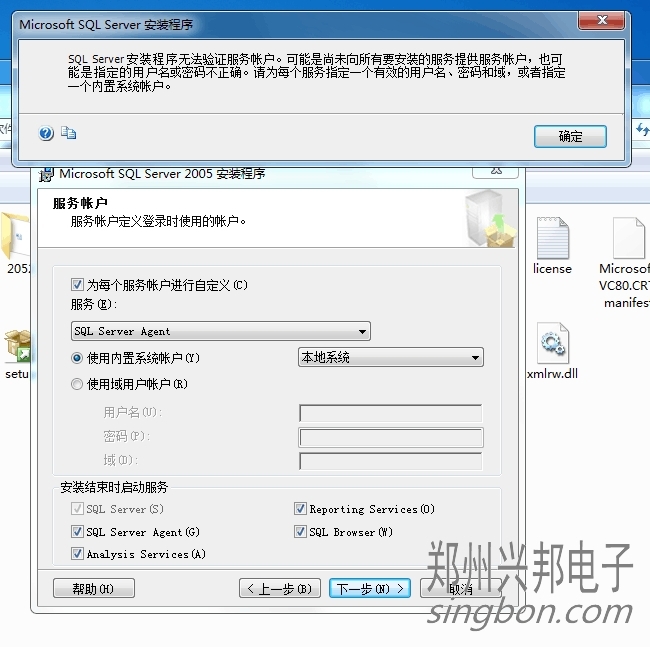 [文章內(nèi)容簡介]:安裝SQL Server2005時(shí)提示安裝程序無法驗(yàn)證服務(wù)帳戶