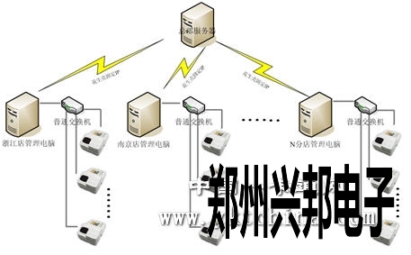 如上圖所示,整個(gè)系統(tǒng)的管理電腦單獨(dú)存在,在剛開始建設(shè)時(shí)就把各個(gè)分店的電腦數(shù)據(jù)庫(kù)單獨(dú)建立,制作卡片時(shí),通過(guò)卡片的號(hào)碼段位來(lái)區(qū)分各店的范圍,只是在需要傳輸數(shù)據(jù)時(shí),通過(guò)花生殼軟件等工具綁定IP地址,使各家分店和總部服務(wù)器之間的通訊無(wú)地理的局限,實(shí)現(xiàn)整個(gè)系統(tǒng)數(shù)據(jù)的實(shí)時(shí)交換。