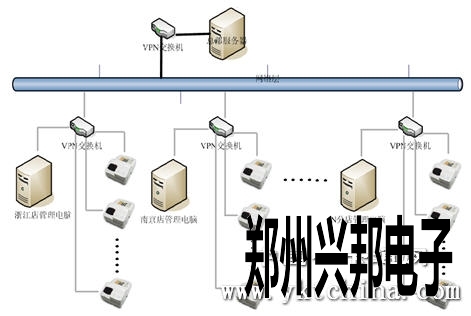 如上圖所示,把整個(gè)系統(tǒng)的管理電腦納入到VPN局域網(wǎng)絡(luò)中來(lái),使各家分店和總部服務(wù)器之間的通訊無(wú)地理的局限,實(shí)現(xiàn)整個(gè)系統(tǒng)數(shù)據(jù)的實(shí)時(shí)交換。